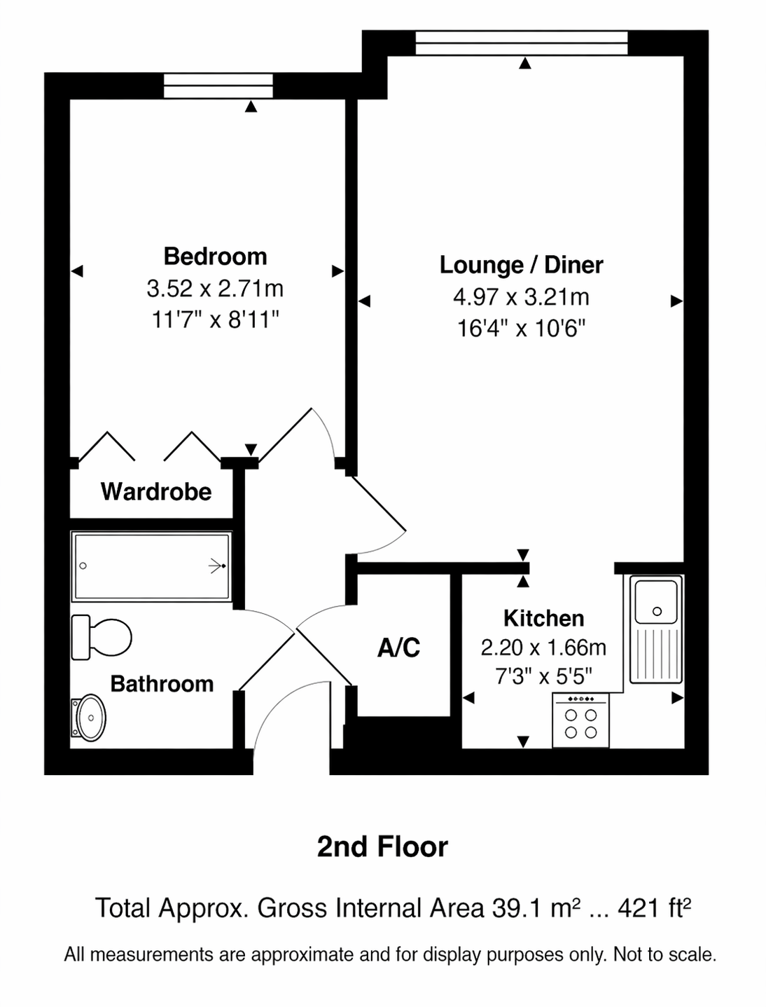 • Area: 421 sq ft